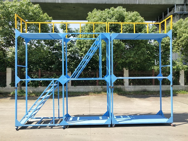 无锡公交集团惠山分公司保修厂QC小组自主研制了车顶高空作业安全防护栏。该工具主要由1个内设爬梯的梯笼架、3个辅助架、带有安全绳的安全防护栏等部分组成,所有框架均采用45#钢、40mm*40mm的方管与3mm花纹钢板焊接而成防撞垫。