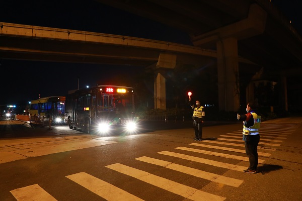 科学组织运营,满足市民出行。根据冬季市民集中在早晚两高峰出行的特点,各基层单位对所属线路进行了客流预测分析,根据运量需求科学安排运力;加强安全管理,提升安全意识。各基层单位对驾驶员进行换季安全教育培训,进一步提高文明安全行车意识。凌晨4点30分,安管人员对各线路易发生冰冻路段进行勘察,标记行车危险点;驾驶员提前到岗,做好发车前的例保清洁消杀工作;管理人员驻守调度站,查验驾驶员健康信息,加强疫情防控宣传,做好安全规范行车提醒;强化机务保障,确保车况良好。对营运车辆安全一级部位进行重点检查和维护,确保使用有效,同时机务人员进行防滑链安装拆卸,铺设防滑草垫,进行喷灯演练等,成立应急抢修队伍,为应对恶劣天气做足准备;物资足量备齐,确保供应有序。物资分公司提前筹备冬运物资,确保冬运物资充足,供应有序。