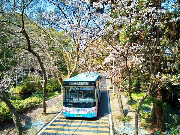 为在樱花季给市民、乘客提供更为舒适、贴心的出游体验,集团公司联合无锡鼋头渚旅游有限公司,在1路公交车上推出樱花主题车。主题车车身以樱花为主旋律,在蓝天白云的映衬下,好像一片流动的樱花林。整个车厢以樱花粉色为主色调,车顶、椅背、拉环等部位到处都有樱花和鼋头渚赏樱佳绝处,步入车厢,顿时有种进入景区樱花谷的感觉。当驾驶员开启车内空调新风系统,一股淡淡的樱花芳香让人感到心旷神怡,这是无锡公交特意在车内通风道内放置的香薰。乘客对美好出行需求的向往就是无锡公交的工作目标,也是无锡公交践行党的二十大精神的最好诠释。