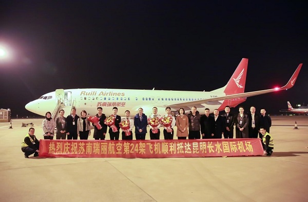 日,苏南瑞丽航空龙年引进的首架客机从澳门飞抵昆明,至此公司机队规模达