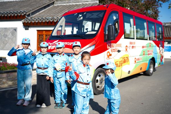 客运集团蒲市专列从无锡汽车客运站始发,最早6:30,最晚17:05;蒲市村返锡最早6:35,最晚18:10。市民可通过无锡汽车客运站售票窗口或“巴士管家”app 及小程序轻松购票,票价仅18元/人,共设置11个班次,满足旅客不同时间段出行的各项需求,为市民旅客实现周边游、乡村游、周末游提供了极大的出行便利。车身精心设计,以蒲市村经典IP形象——蒲市小红娃为主体,通过生动可爱的视觉元素和鲜明的色彩,打造出一辆富有亲和力和辨识度的蒲市专列,成为美丽乡村一道靓丽的风景线。车身上还展示了新四军六师师部驻地旧址、风铃长廊、粉黛花海、最美村咖、梦享飞行乐园等特色景点,化身为一本移动的蒲市“旅游攻略”。