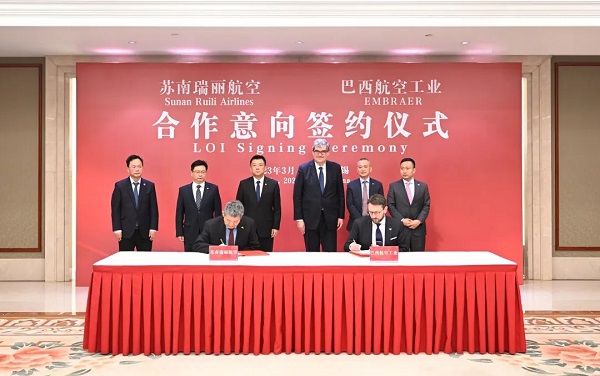 3月3日,苏南瑞丽航空和巴西航空工业签署合作意向,双方航空产业合作按下“加速键”。市委书记杜小刚出席签约仪式并与来访的巴西驻华大使馆公使衔参赞马嘉良会谈。副市长张立军、巴航工业商用飞机首席商务官马丁·福尔摩斯参加活动。